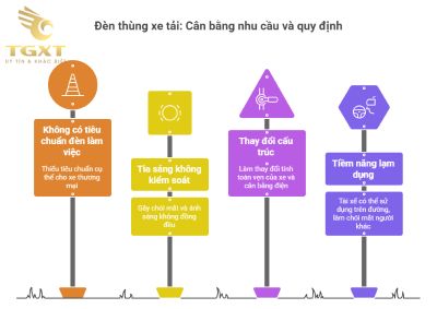 Thay đổi *cấu trúc xe* và mất cân bằng kỹ thuật: Việc lắp đặt đèn thùng đòi hỏi can thiệp vào kết cấu thân xe hoặc hệ thống khung gầm để gắn giá đỡ, khoan lỗ và kéo dây điện. Những can thiệp này làm thay đổi tính toàn vẹn kết cấu của phương tiện, có thể ảnh hưởng đến độ cứng vững và khả năng chịu lực của thân xe, đặc biệt khi gặp va chạm.