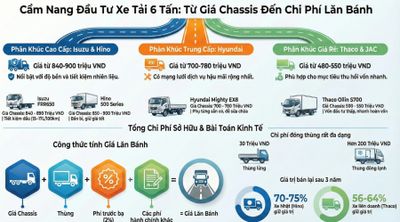 Sự chênh lệch giá gần gấp đôi giữa phân khúc thấp nhất và cao nhất phản ánh sự khác biệt về xuất xứ, công nghệ động cơ, độ bền khung gầm, và chính sách hậu mãi. Trong khi xe Nhật Bản được đánh giá cao về độ tin cậy và tuổi thọ khai thác, xe liên doanh lại mang lại lợi thế về thời gian hoàn vốn nhanh hơn nhờ chi phí đầu tư ban đầu thấp. Người mua cần hiểu rõ rằng giá niêm yết chỉ là giá xe chassis - tức xe nền chưa có thùng và chưa bao gồm các chi phí để xe có thể lưu hành. Tổng chi phí thực tế để sở hữu một chiếc xe tải 6 tấn hoàn chỉnh có thể cao hơn 20-30% so với giá chassis ban đầu.