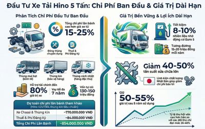 Việc lựa chọn Hino 5 tấn với mức giá cao hơn so với các thương hiệu khác không phải là quyết định bốc đồng mà xuất phát từ quan điểm chiến lược về tổng chi phí sở hữu. Khái niệm "tổng chi phí sở hữu" (Total Cost of Ownership - TCO) không chỉ bao gồm giá mua ban đầu mà còn tính đến chi phí nhiên liệu, bảo dưỡng, sửa chữa, và giá trị bán lại sau một chu kỳ sử dụng nhất định. Khi áp dụng mô hình TCO, nhiều doanh nghiệp nhận ra rằng chênh lệch giá ban đầu sẽ được bù đắp hoàn toàn trong vòng 3-5 năm nhờ vào các yếu tố tiết kiệm và giữ giá của xe Hino.