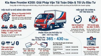 Kia K200 định vị ở phân khúc xe tải nhẹ cao cấp với mức giá hợp lý cho chất lượng mang lại. So với việc tiết kiệm 30-40 triệu đồng khi mua xe Trung Quốc giá rẻ, việc đầu tư vào K200 mang lại lợi thế rõ rệt về độ tin cậy, chi phí vận hành thấp và giá trị thanh lý cao. Trong một phân tích tổng chi phí sở hữu 5 năm, K200 thường có TCO thấp hơn 10-15% so với các đối thủ giá rẻ nhờ tiết kiệm nhiên liệu, ít hỏng vặt và giữ giá tốt khi bán lại.