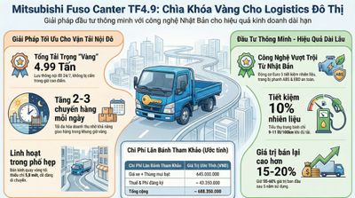 Quyết định mua xe tải Mitsubishi Fuso Canter TF4.9 không nên chỉ dựa trên giá niêm yết ban đầu mà cần xem xét toàn diện giá trị sử dụng trong suốt vòng đời khai thác. Một phân tích tổng chi phí sở hữu (Total Cost of Ownership - TCO) cho thấy TF4.9 có chi phí thấp hơn 12-18% so với các dòng xe giá rẻ trong vòng 5 năm đầu, bất chấp giá mua cao hơn 15-20%.