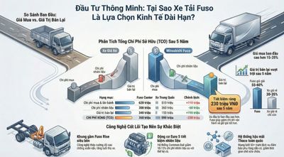 Con số này cho thấy dù đầu tư ban đầu cao hơn 110 triệu đồng, Fuso Canter thực sự tiết kiệm được 230 triệu đồng sau 5 năm nhờ chi phí vận hành thấp và giá trị bán lại cao. Đây là minh chứng rõ ràng nhất cho lợi thế của việc đầu tư xe tải chất lượng cao thay vì chạy theo giá rẻ. Doanh nghiệp cần nhìn nhận phương tiện vận tải như một tài sản sinh lời lâu dài, không phải là khoản chi phí một lần.