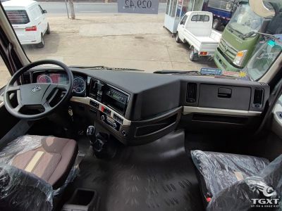 Cabin H5 rộng rãi với 2 giường nằm và hệ thống điều hòa tiêu chuẩn mang đến không gian làm việc thoải mái cho tài xế, đặc biệt là trong những hành trình dài. Hệ thống phanh Wabco (Mỹ) kết hợp công nghệ ABS đảm bảo an toàn trong mọi điều kiện vận hành, tạo sự an tâm cho người lái và chủ doanh nghiệp.