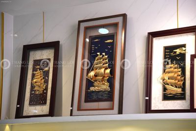 Nếu Mã đáo thành công nhấn mạnh vào tốc độ và đích đến, thì tranh Thuận buồm xuôi gió mạ vàng lại tập trung vào hành trình - một hành trình thuận lợi, hanh thông, không gặp trở ngại. Họa tiết thuyền buồm căng gió lướt trên sóng biển gợi lên hình ảnh của sự khởi đầu suôn sẻ và con đường kinh doanh rộng mở.