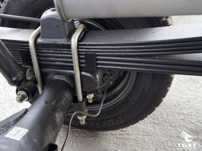 Hệ thống lá nhíp dày dặn, chắc chắn giúp xe chịu tải cao.