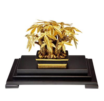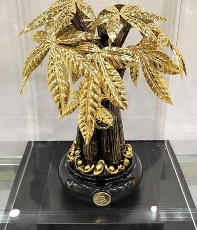Cây Kim Ngân (Money Tree) mạ vàng là mô hình mỹ nghệ cao cấp mô phỏng hình dáng cây Pachira Aquatica, được chế tác từ cốt đồng đỏ hoặc đồng vàng nguyên khối. Sản phẩm trải qua quy trình mạ điện phân vàng 24K, sử dụng vàng thật với độ tinh khiết 99.99%, sau đó phủ lớp Nano bảo vệ để duy trì độ bóng và chống oxy hóa. Tên gọi "Kim Ngân" mang ý nghĩa sâu sắc trong văn hóa Á Đông, với "Kim" là Vàng và "Ngân" là Tiền/Bạc, biểu trưng cho kho báu tài chính và sự giàu sang phú quý. Đặc biệt, 5 cánh lá của cây Kim Ngân đại diện cho Ngũ hành (Kim - Mộc - Thủy - Hỏa - Thổ), mang thông điệp cân bằng năng lượng và hài hòa cho không gian. Đây là món quà lý tưởng cho các dịp khai trương, thăng chức, tân gia hoặc quà ngoại giao tặng đối tác, vừa khẳng định đẳng cấp người tặng vừa gửi gắm điềm lành thịnh vượng cho người nhận.