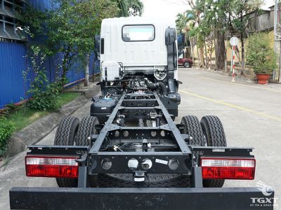 Khung gầm của xe được thiết kế với cấu trúc bền bỉ, sử dụng thép chuyên dụng có khả năng chịu tải cao, phù hợp với tải trọng lớn và điều kiện đường sá Việt Nam. Gương chiếu hậu có kích thước lớn, hỗ trợ tầm quan sát rộng, tăng cường an toàn khi vận hành.
