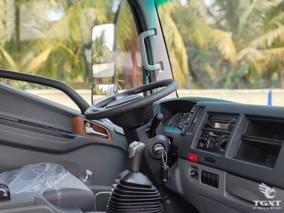 Không gian cabin rộng rãi trang bị 3 chỗ ngồi bọc nỉ cao cấp, mang lại cảm giác thoải mái cho tài xế và hành khách trong những chuyến hàng dài. Hệ thống giải trí bao gồm Radio, điều hòa nhiệt độ, kính chỉnh điện cùng vô lăng 4 chấu hiện đại tạo nên không gian làm việc tiện nghi cho người lái.